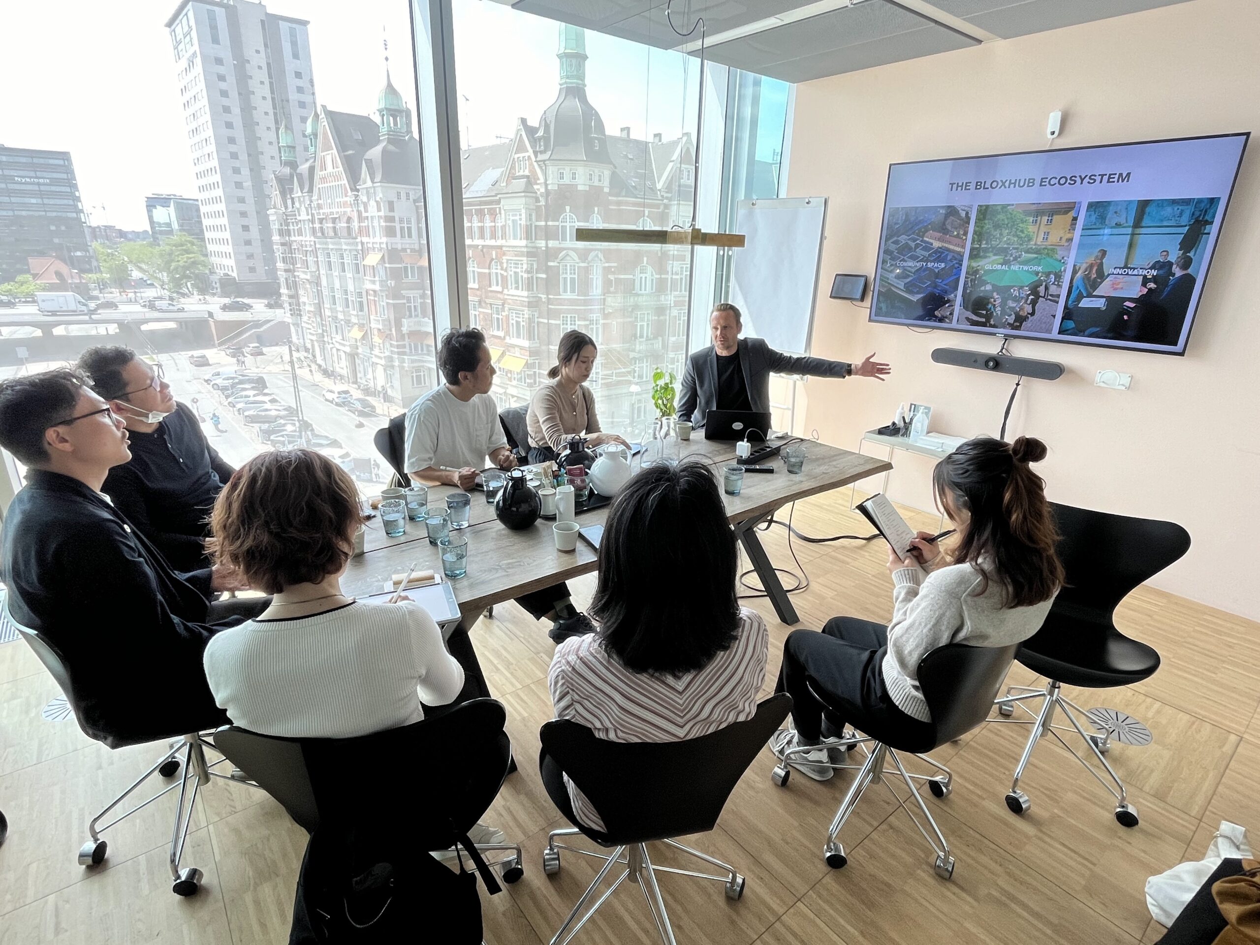 14日には、Bjarke Ingels Group(BIG)、Bloxhub、VELUXを訪問し、プロジェクトに関するヒアリングやオフィスの案内をしていただきました。15日には、エナジーアイランドとして知られているデンマークのボーンホルム島を訪問いたしました。この日は、ヨーロッパでトップ10の環境に優しいホテルの一つに選ばれたHotel Green Solution Houseを訪れ、その後、デンマーク最大の年次民主主義イベントであるフォルケムーデ(Folkemødet)に参加しました。フォルケムーデでは、王立デンマーク・アカデミー(Royal Danish Academy)のデザイナーや学生たちと持続可能なデザインについて活発な議論を交わすことができました。16日には、Square One訪問、および、Upcycle studios、Grønttorvet、Living Places Copenhagenなどの現場視察をいたしました。